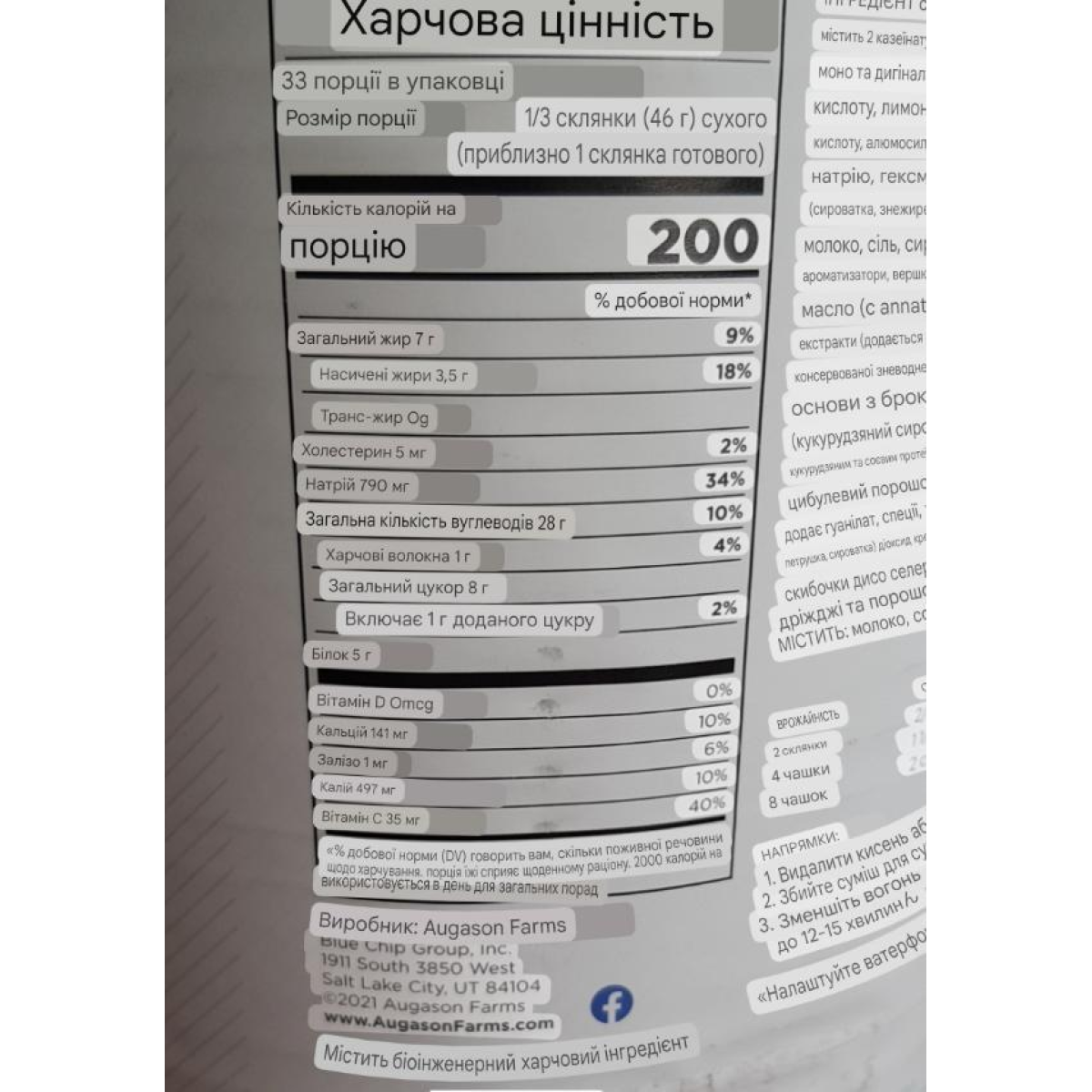Виробництво (США) Солт-Лейк-Сіті, штат Юта, сімейна компанія Augason Farms, заснована 1972 року.