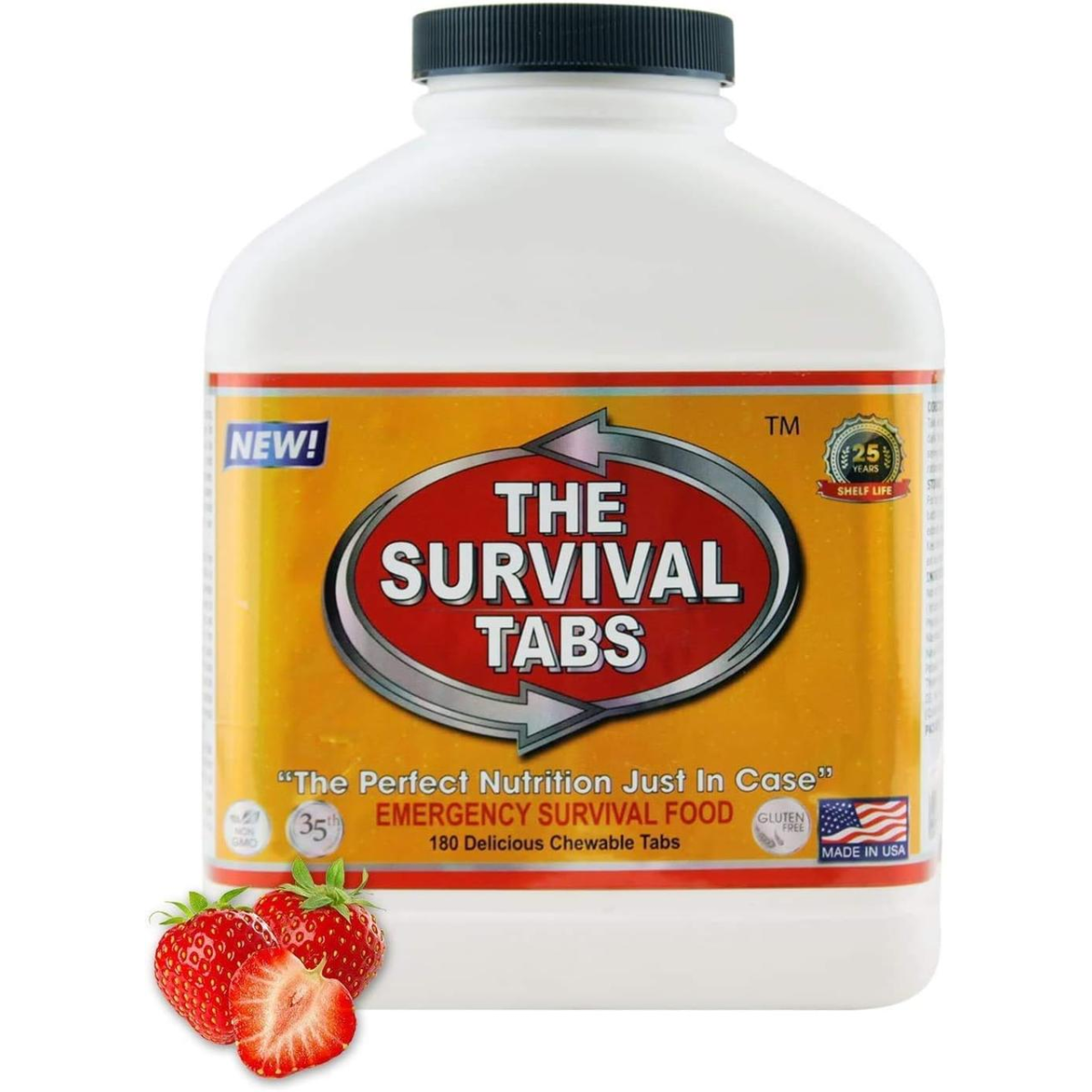 Survival Tabs 15-Day Food Supply Emergency Food Ration 180 tabs Survival MREs for Disaster Preparedness for Earthquake Flood Tsunami Gluten Free and Non-GMO 25 Years Shelf Life - Strawberry Flavor