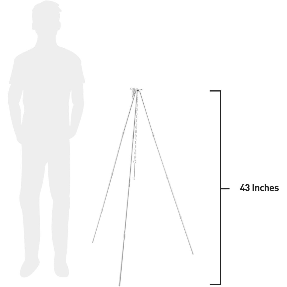 УНІВЕРСАЛЬНІСТЬ НА ВІДКРИТОМ ПОДРЯХЕ: Регульований підвісний ланцюг дає змогу контролювати висоту, на якій чавунна каструля висить над вогнем, що забезпечує більшу гнучкість під час приготування їжі на відкритому повітрі.