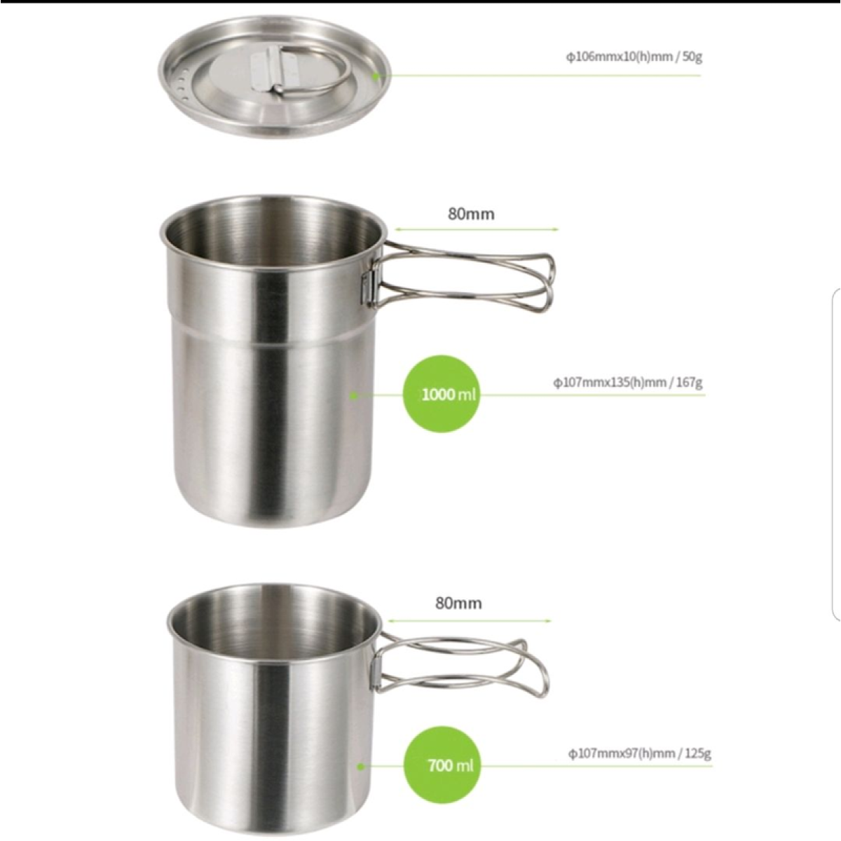 Набір котелків для кемпінгу 700ml + 1000ml неіржавка сталь