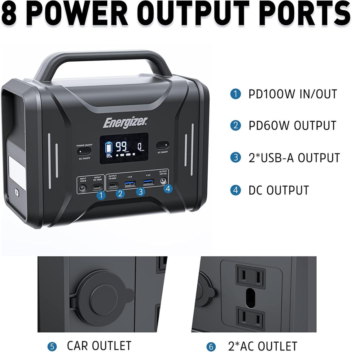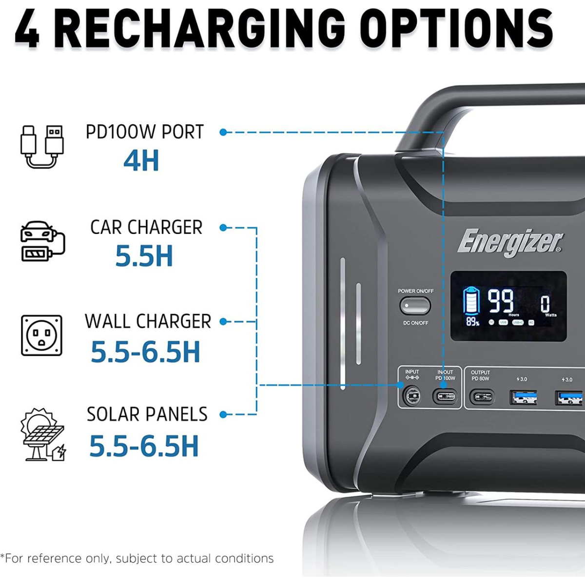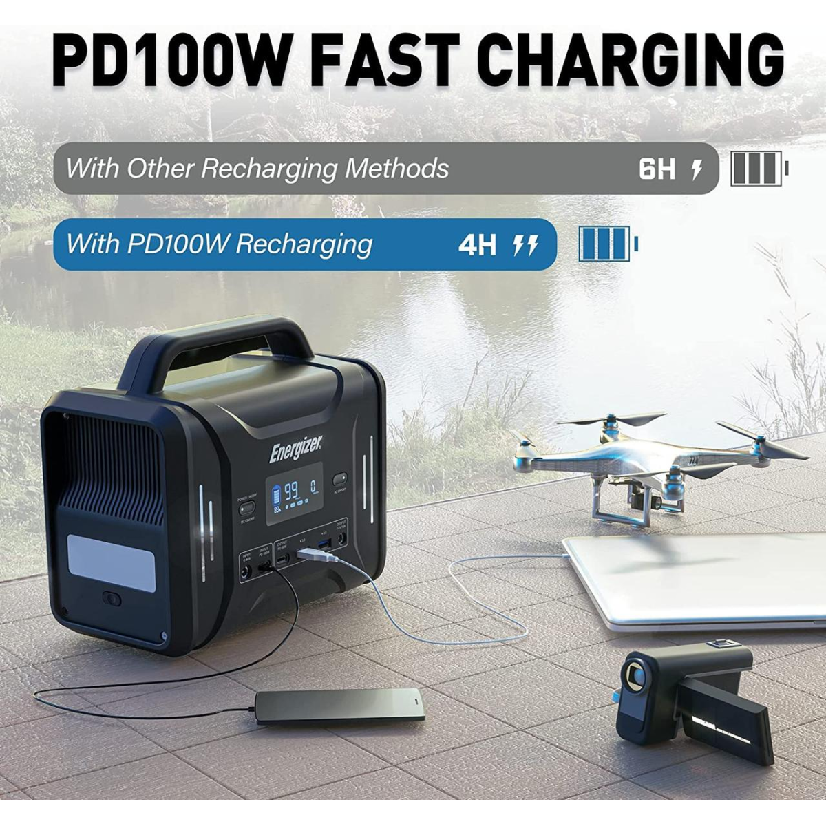【4 СПОСОБА ЗАРЯДКИ】: сонячний генератор можна заряджати через адаптер змінного струму (6,27 години), автомобільний зарядний пристрій (6,27 години), сонячну панель (не входить до комплекту) (3,76 години). Резервний акумулятор також можна зарядити через вхід PD потужністю 100 Вт лише за 3,76 години. Портативну електростанцію Energizer легко носити із собою та заряджати, хай де ви будете.