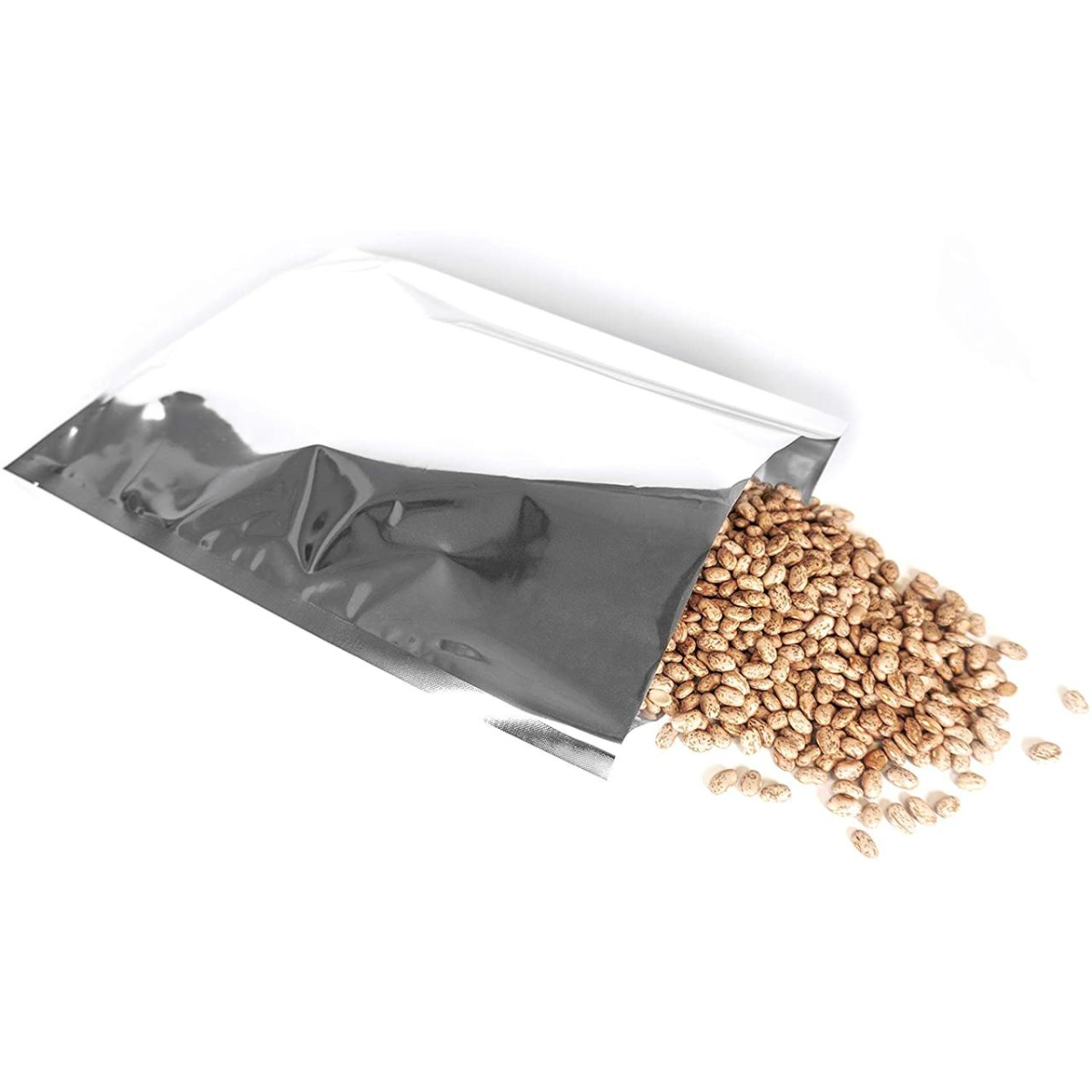 НИЗКА ШКОРНІСТЬ ПЕРЕДАВАННЯ КИСЛОРОДА: Майларові мішечні плівки забезпечують три шари захисту та пропонують надзвичайно низьку швидкість передавання кисню (OTR) завдяки товстому шару ламінату з фольги. Це захистить вашу їжу від негоди для тривалого зберігання.