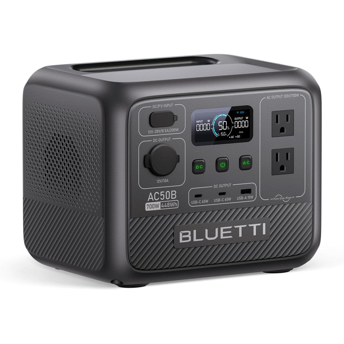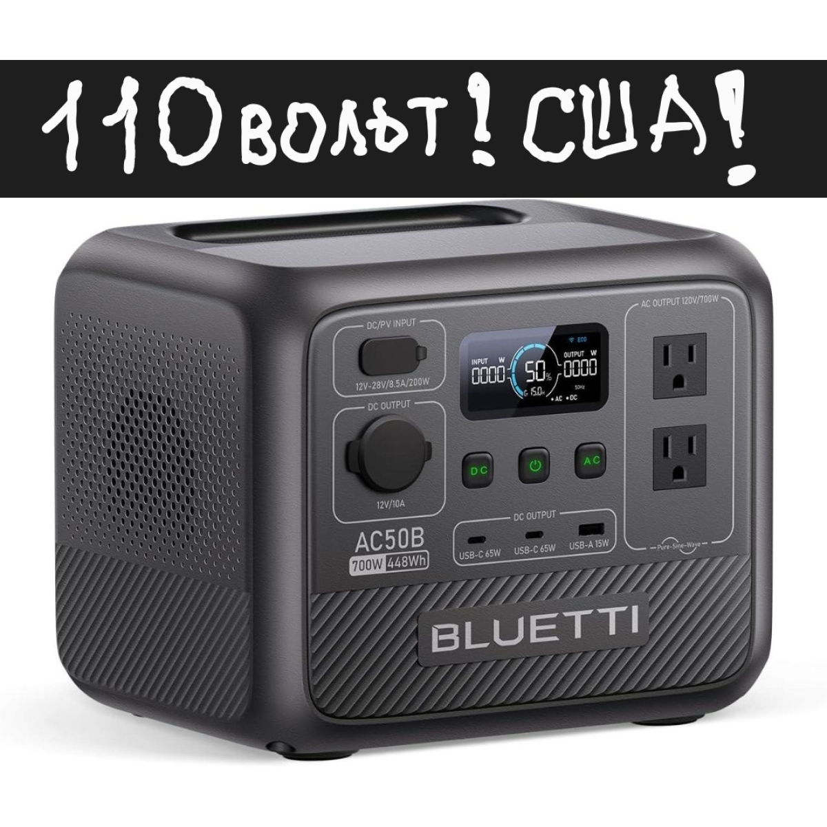 Портативна електростанція BLUETTI AC50B, резервний акумулятор LiFePO4 ємністю 448 Вт·год із 2 розетками змінного струму кожна потужністю 700 Вт (пікова потужність 1000 Вт), заряджання 0-80% за 45 хв.