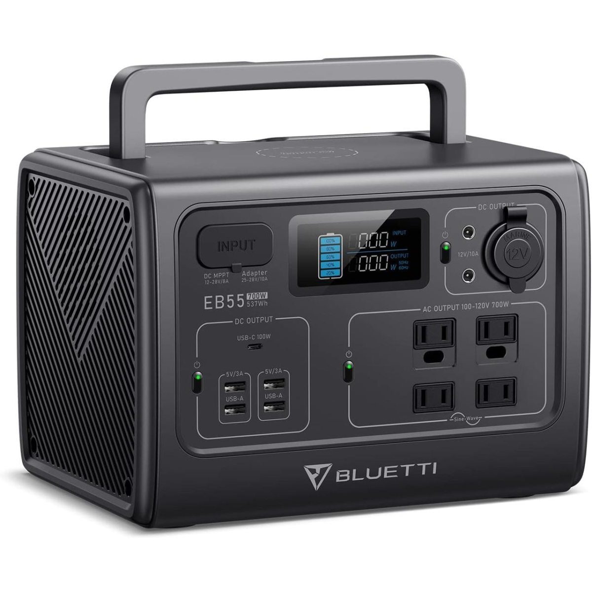 Портативна електростанція BLUETTI EB55 (США!!! 110вольт), резервний акумулятор LiFePO4 ємністю 537 Вт/год із 4 розетками змінного струму 110вольт!!! потужністю 700 Вт (пікова потужність 1400 Вт), Type-C 100 Вт