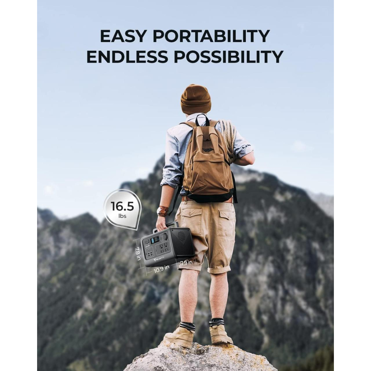 [Маленька, але потужна] — Сонячна батарея EB55 розміром з ланч-бокс важить на 16,5 фунтів більше, ніж паковання із 6 пляшок холодного харчування зі складаною ручкою зверху, що дає змогу вам подорожувати без енергії.