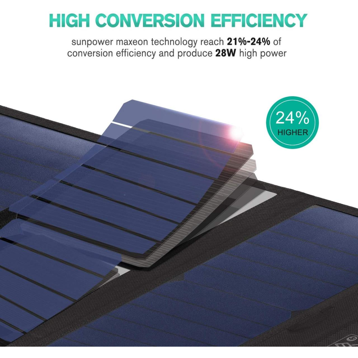 ВИСОКА ЕФЕКТИВНІСТЬ ПЕРЕВАГИ: Створено на основі високоефективних сонячних елементів SunPower Maxeon, які, як відомо, працюють краще, ніж звичайні панелі на ринку. Сонячний зарядний пристрій Nekteck USB може здійснювати до 28 Вт, що вище, порівнюючи з іншими зарядними пристроями для сонячних панелей.
