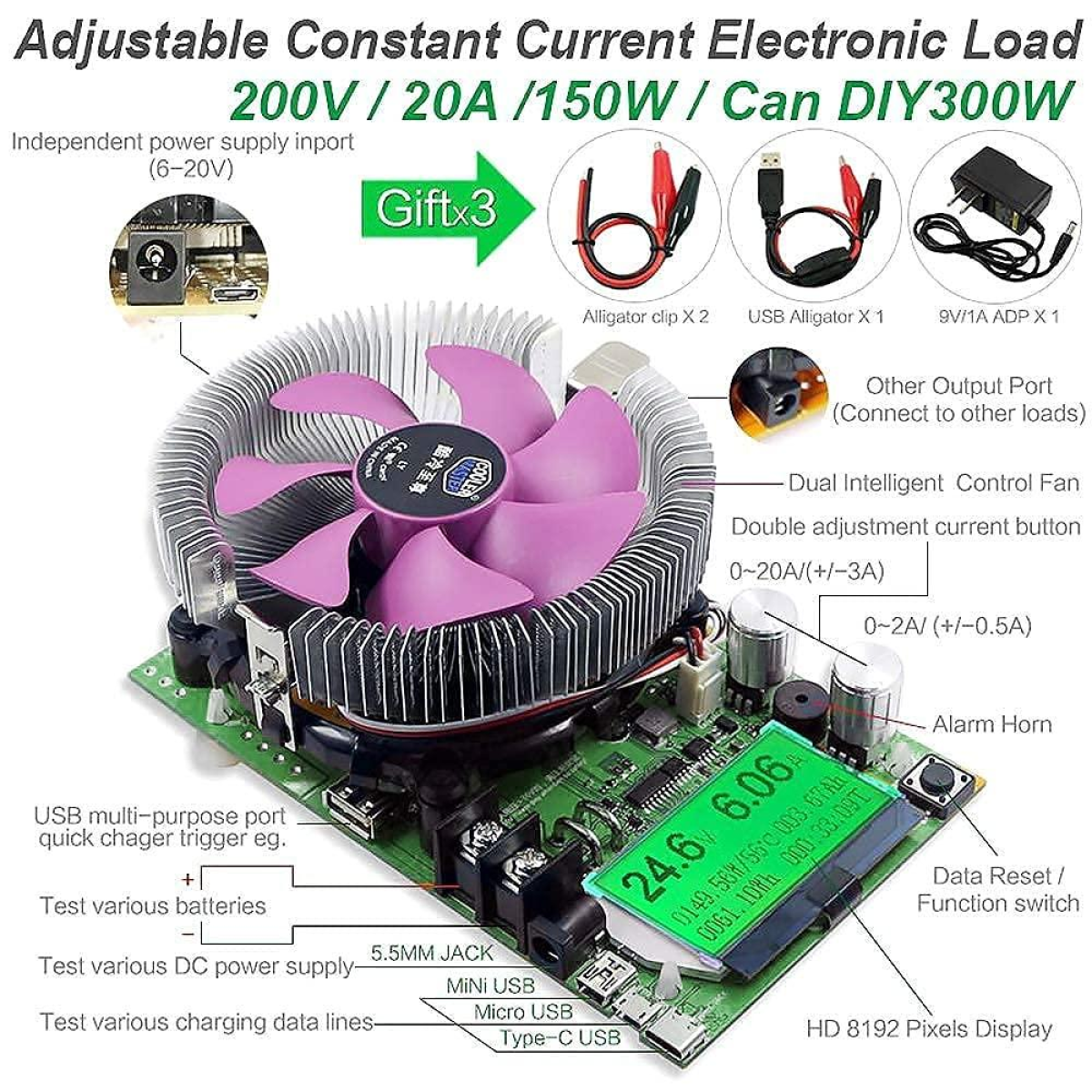 Електронний тестер навантаження MakerHawk — тестер навантаження USB 150 Вт 200 В 20 А Резистор Регульований постійний струм Модуль тестера ємності акумулятора Інтелектуальний розрядник.